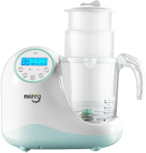 Mappy TB-1102C Pároló és turmixgép Ami a legjobb neki!Az utóbbi években a friss és egészséges, házilag készített ételek, fokozatosan félkész ételekkel voltak helyettesítve, amelyek számos színezéket és tartósítószert tartalmaznak. Mappy Care TB-1102C gőzfőző és mixerA Mappy Care TB-1102C gőzfőzővel és mixer-el könnyen, egészséges ételeket készíthet babájának, mint például gyümölcsöket, zöldségeket, halat vagy húst. Melegítés és kiolvasztásA meleg gőz segítségével, a különböző zöldségek és gyümölcsök melegítése vagy kiolvasztása fokozatosan és hatékonyan történik így megőrizve az ételek kezdeti frissességét. SterilizálásA cumisüvegeknek, etetőcumiknak és minden olyan eszköznek amelyet a baba etetésekor használunk, nagyon fontos a sterilizálása. Aprítás és darálásAz ételek aprítása nagyon fontos, mivel ez lehetővé teszi, hogy a baba könnyen megehesse az ételt anélkül, hogy fulladás veszély lépne fel. Digitális vezérlésA Mappy TB-1102C egy könnyen használható digitális vezérlővel van felszerelve amely megkönnyíti a szószok és a száraz ételek elkészítését. Kompakt és hatékony kialakításA kompakt és hatékony kialakítás lehetővé teszi a készülék könnyebb tisztítását. Csak töltse fel vízzel és máris újra használhatja. Az adagoló kanál nem a csomag része.